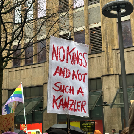 Währenddessen gab es ferner wieder einmal eine Demo in dieser Stadt. Eine ausdrücklich stadtbildbelebende Veranstaltung war es. Welche, und da möchte man fast etwas lokalpatriotisch werden, trotz Regen und Wind und überhaupt trotz Jahreszeit bestens besucht war.